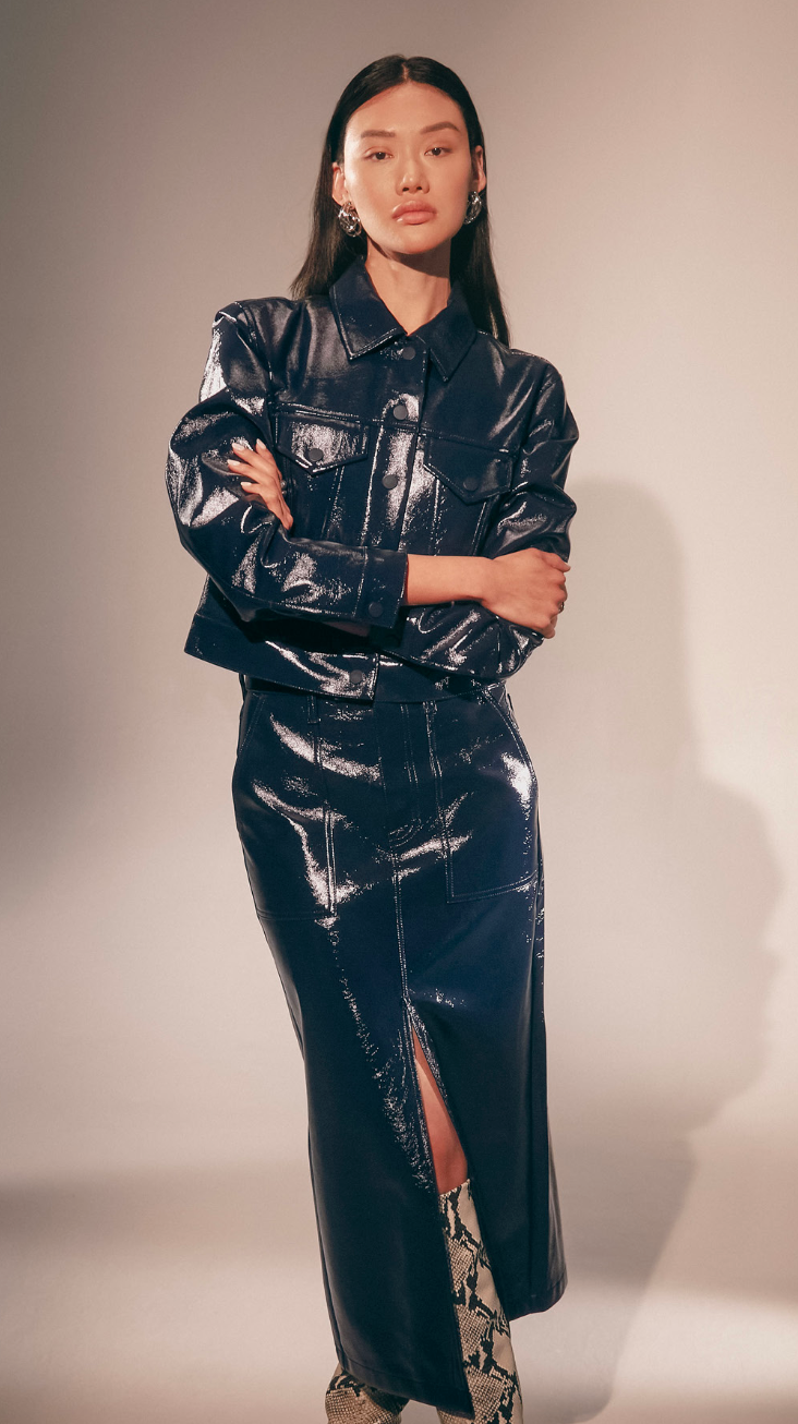 Soft vegan leather, fun vinyl and coated denim to give you an elevated look this season.