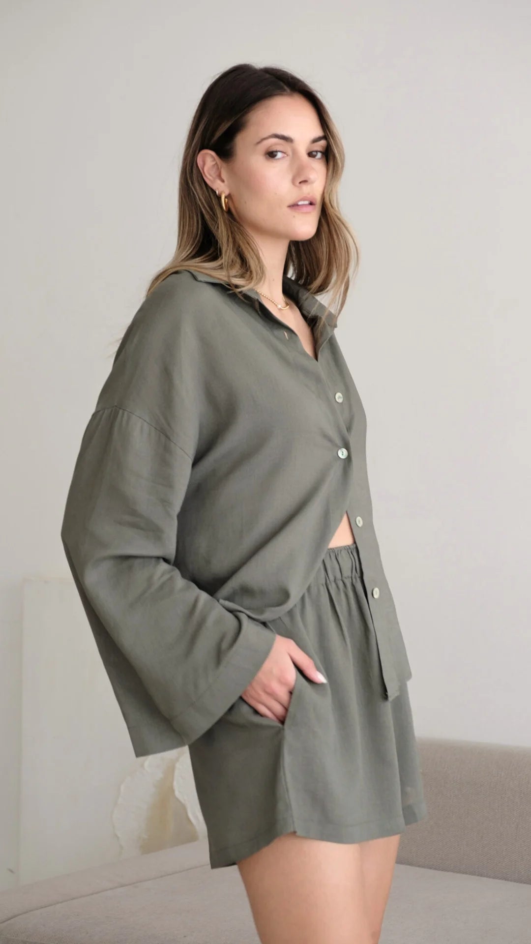 Astrid Shirt is an easy fit button up shirt with a chic wide sleeve in a linen mix fabric. Great teamed with matching Amaya Shorts for an easy summer co-ord. Versatile and classic - this will be your Summer go to, time after time.