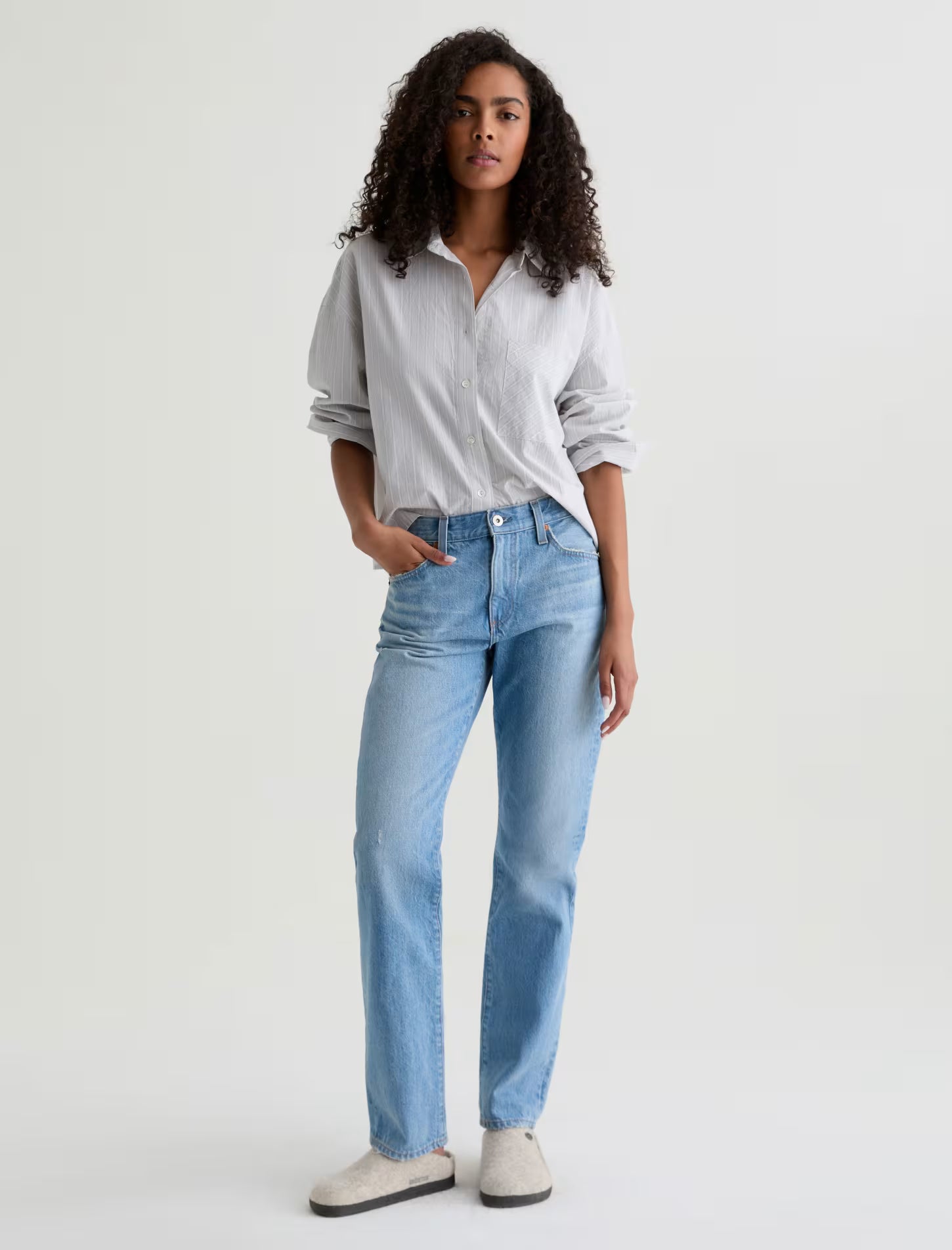 The Boyfriend is a relaxed-fit jean crafted from non-stretch denim. AG-ed™ to replicate 20 years of natural wear for an authentic, timeworn look. This rigid denim offers lasting structure and molds to your shape over time, creating a personalized fit with true vintage appeal. Crafted from premium denim sourced from Italy’s Candiani Mill.