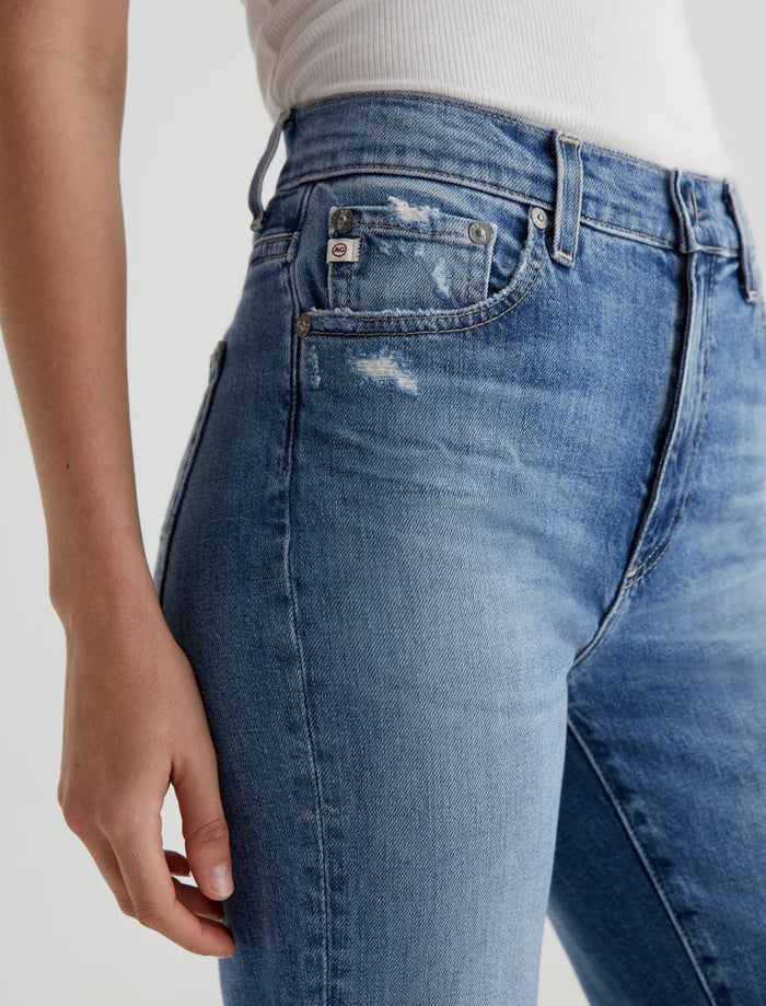 The Brinley Crop features a mid-rise waist and a classic straight-leg silhouette with raw, ankle-baring hems. These cropped jeans come in Vintage Comfort Stretch Denim from Italy. Custom-developed by our designers, the medium indigo AG-ed™ wash has a natural-looking fade, wear along the edges, and a small amount of distressing at one of the hip pockets.