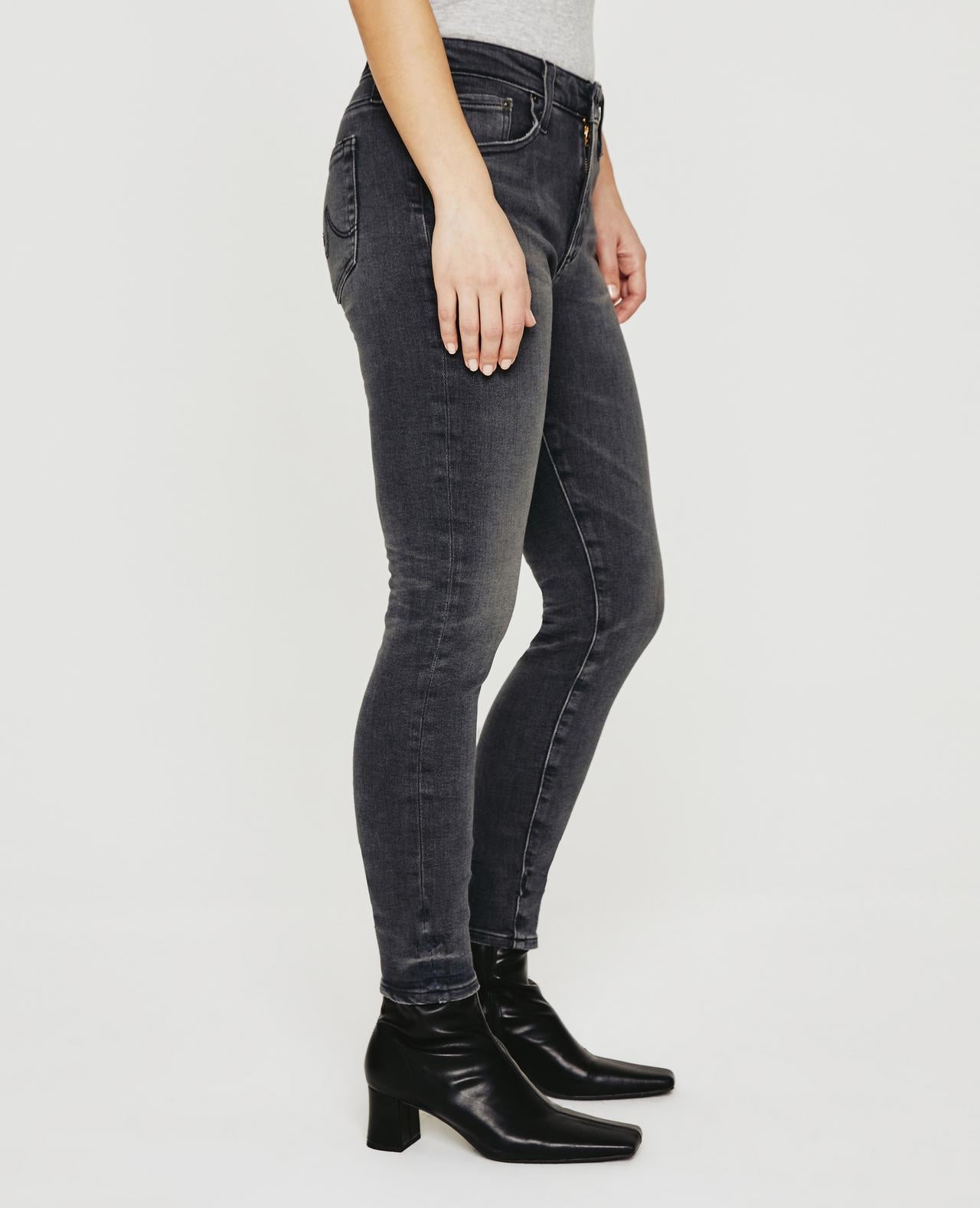 The Farrah Skinny jean for women features a faded grey wash and asymmetrical hems. Made from 11.75 oz. Carbone Stretch Denim, the women's jean has a high waist and a streamlined cut through the legs for a sleek silhouette.