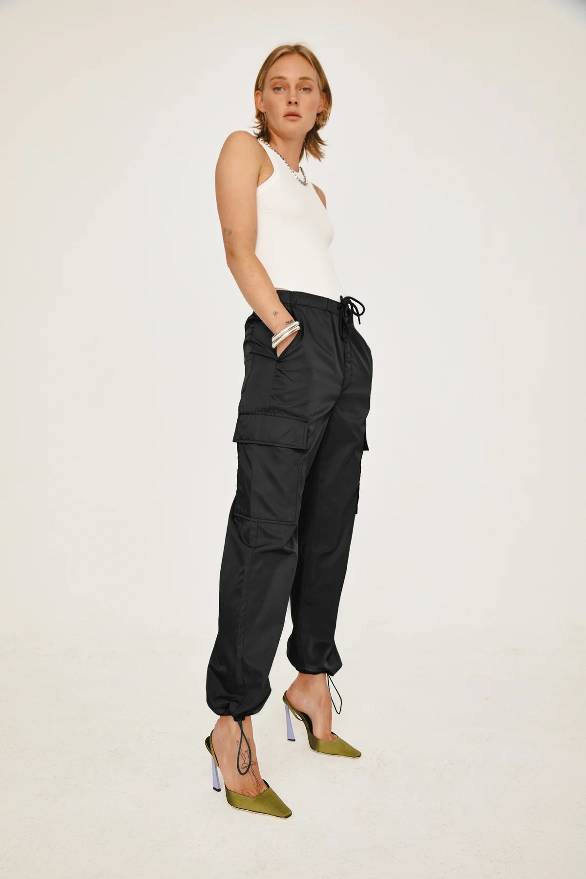 Innovating the fashion industry, one pant at a time. This cargo trouser is created in a lightweight nylon fabric to keep you cool on warm days. Its slight shine gives off a dressy factor while the cargo pocket detailing has a utilitarian edge. Make sure to take advantage of the ankle toggle - you can decide between a jogger or straight leg fit.