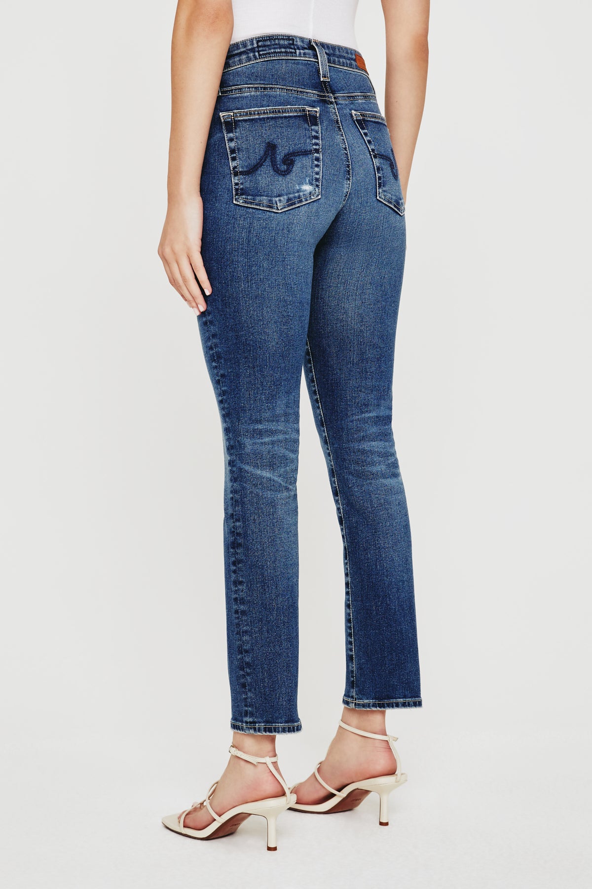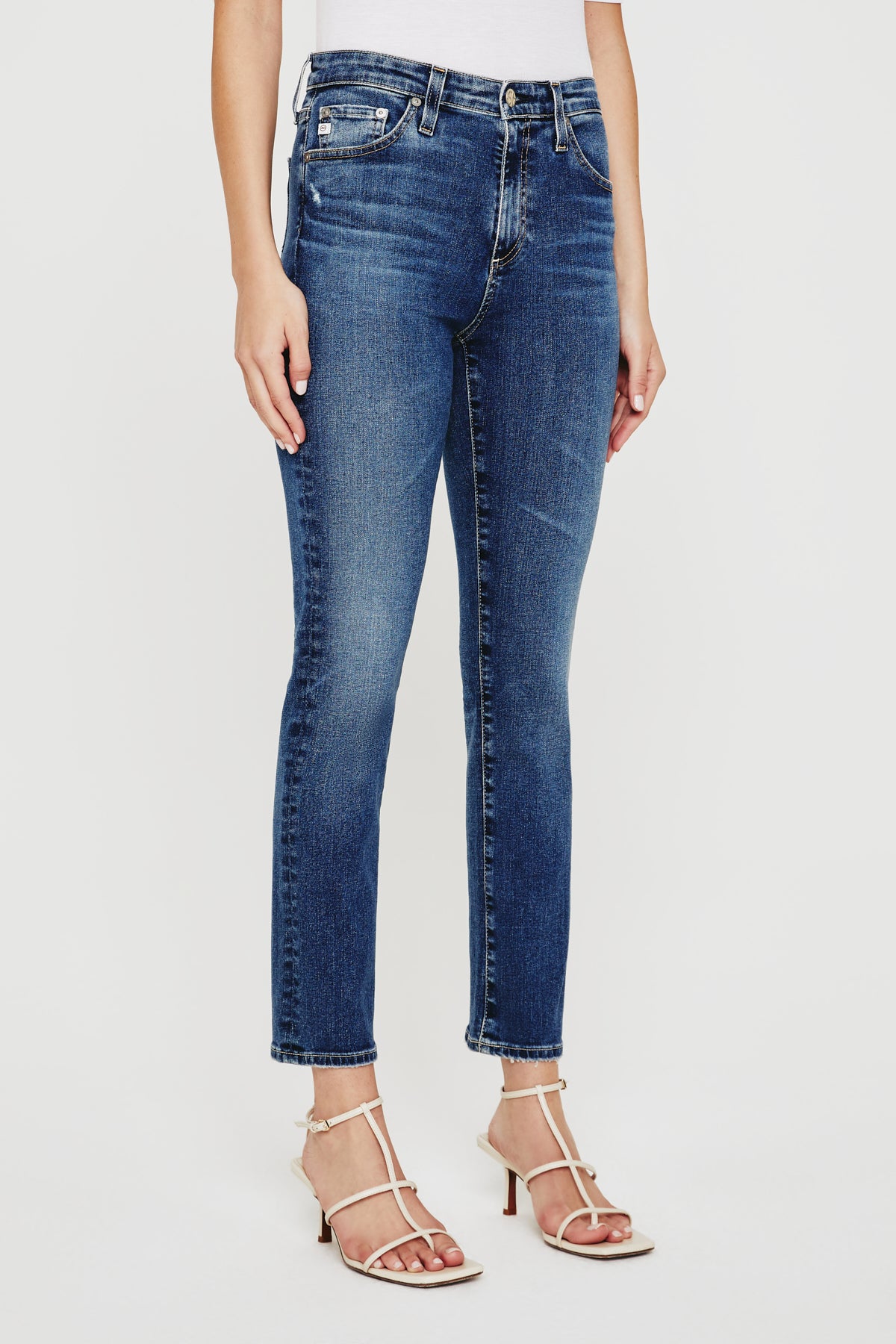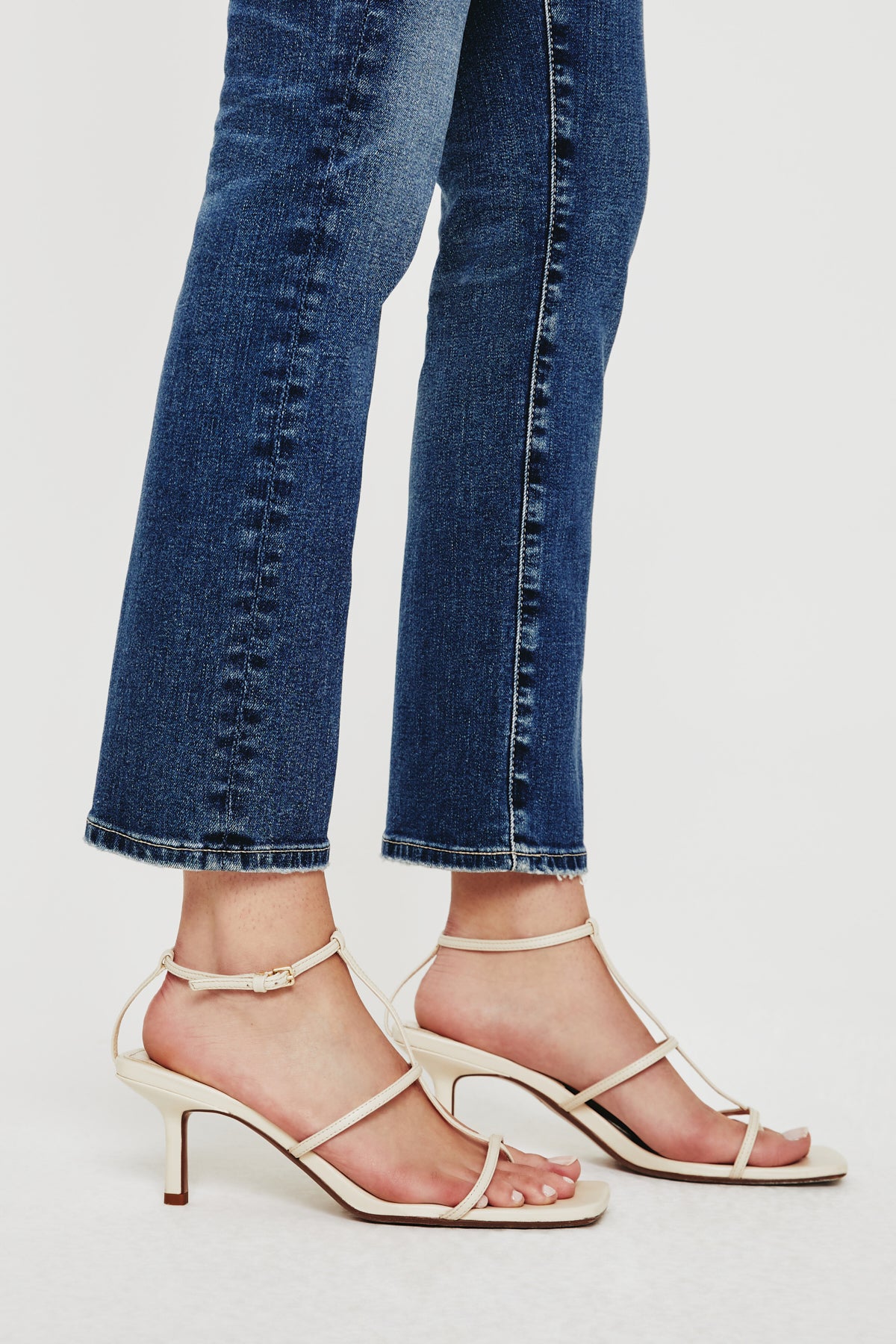 The Mari Crop is a high-rise straight leg jean for women, cut for a cropped silhouette and featuring a medium indigo wash with fading, subtle distressing, and worn hems. The high-waisted style fits easy around the hips with a straight leg and slim leg opening. This women’s high-rise jean is designed in 10 oz. Empower Denim with superstretch construction.