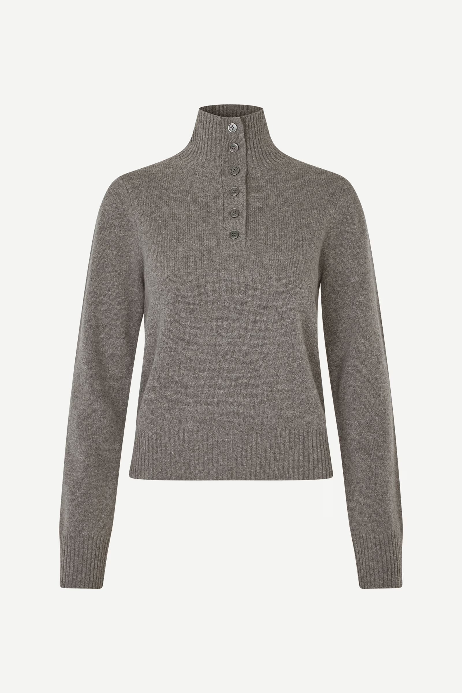 Turtleneck sweater with a regular fit. Short button closure on the front. Rib-knitted collar, cuffs, and hem. Main material made from 100% wool from the merino sheep. This product is RWS certified. The RWS describes and certifies animal welfare and land management practices in wool fibre production and tracks the certified material from farm to final product.